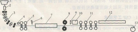 8一熱卷箱; 9一事數勇; 11一精事L機;12一層流冷卻; 13一卷取機